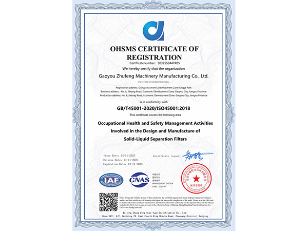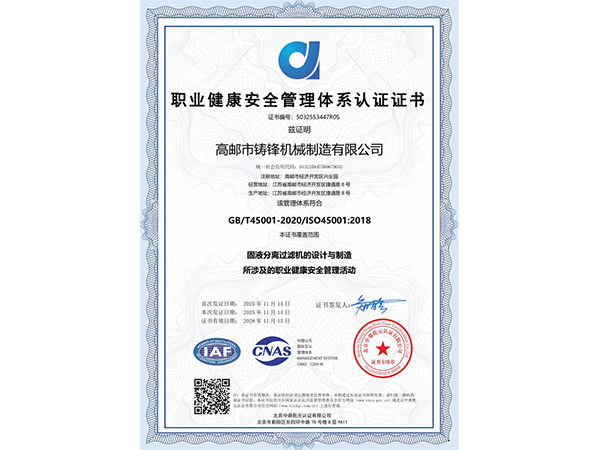职业健康安全管理体系认证证书